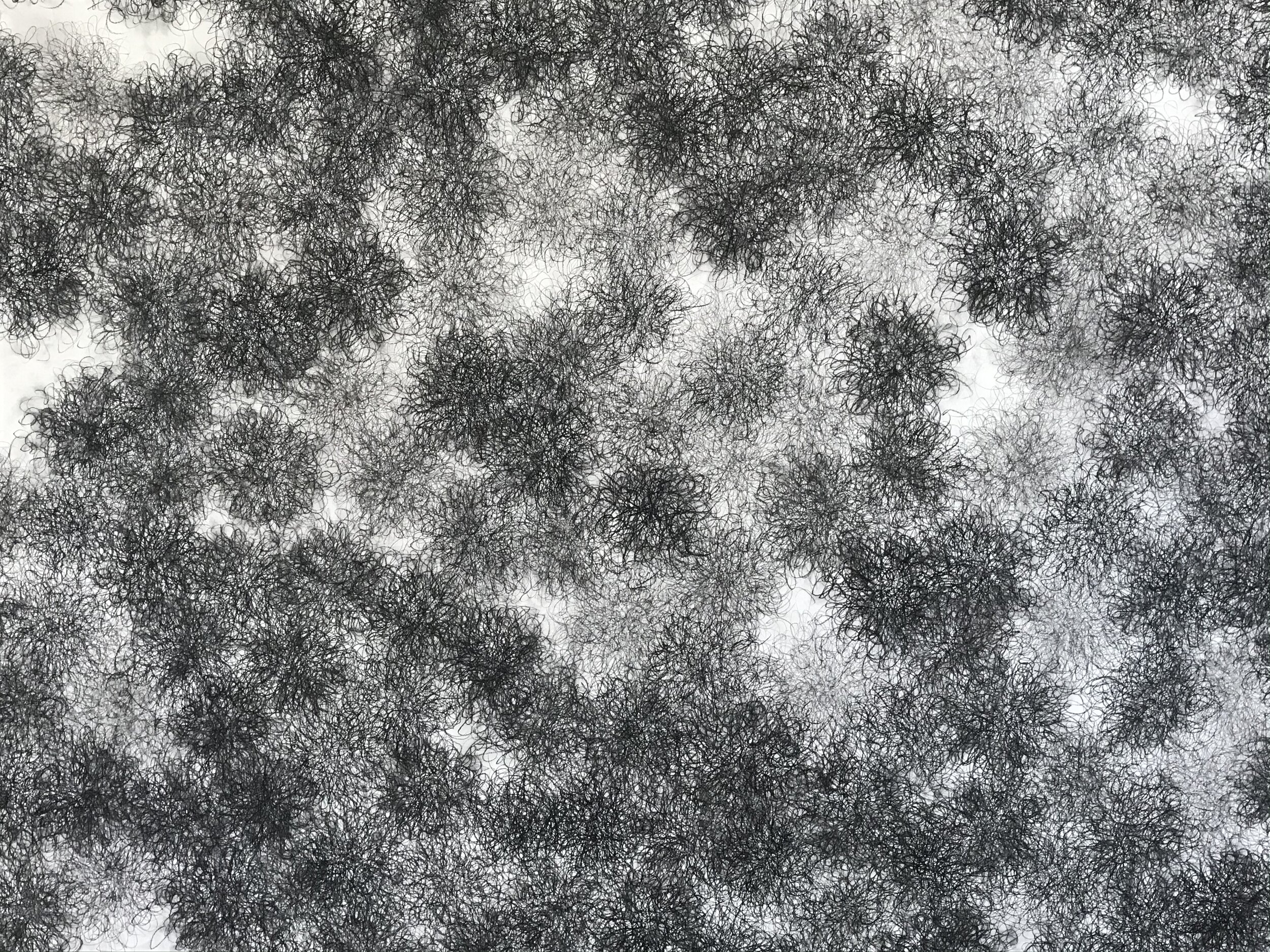 Untitled (Fringe), 2012, 60"x60", charcoal, yarn, paper